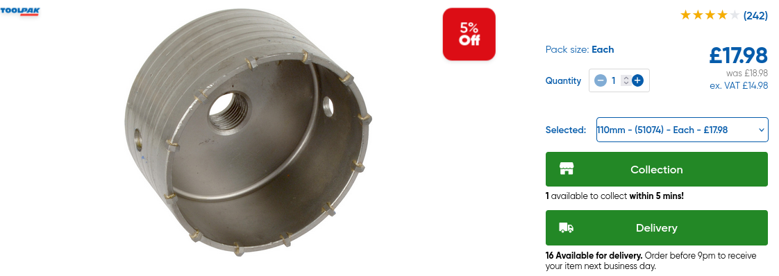 The hole should then be bored out with a TCT/Carbide core bit of an appropriate diameter for the sleeve.