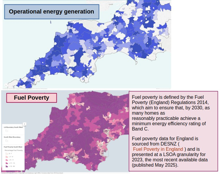 Here's a (NESO) map showing the Operational Generation in the West Country, for example, and the same area showing households in fuel poverty.