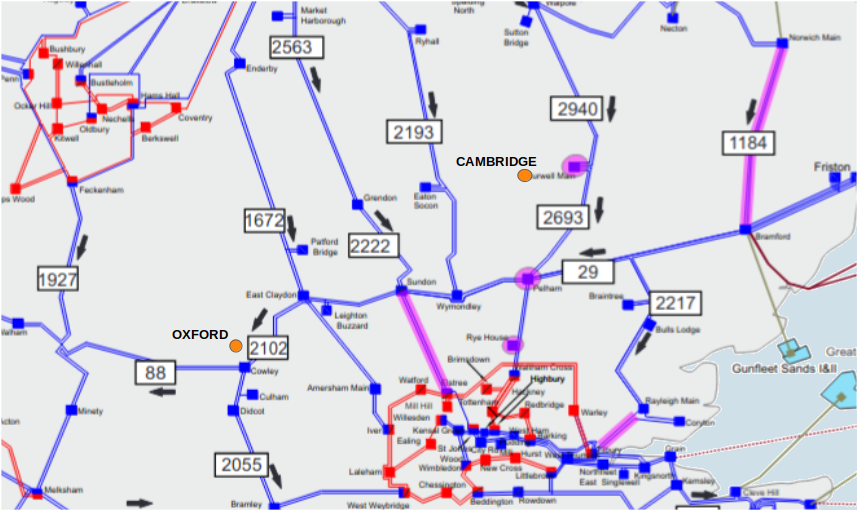 East Anglia grid strengthening should bring a decent amount of wind, solar, interconnects and (if it ever gets finished) nuclear to the Cambridge side of the triangle, as well as Kent.