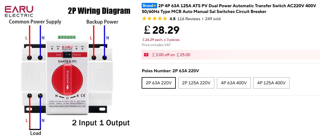 Posted by: @jamespaA quick search didn't turn up any din mounted 4 pole 100A changeover switches with centre off other than an unbranded Chinese one.