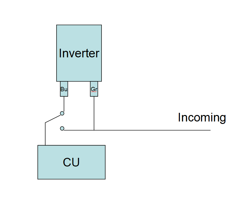 Thats interesting. Are you saying that all of your house circuits are connected to the inverter when it is operating off grid, albeit some of the load has been manually shed? How is this wired? - Like this? Is this 'legal' (cant see why it wouldn't be, its the arrangement on my Narrowboat!)