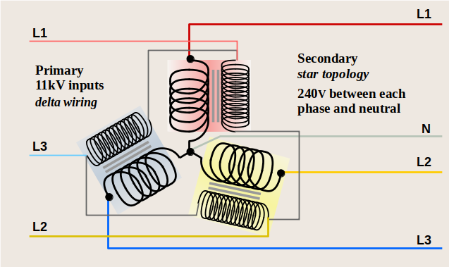In the following (imaginary) village, the substation's Neutral earthing point is ringed in red, and the additional ones ringed in green.