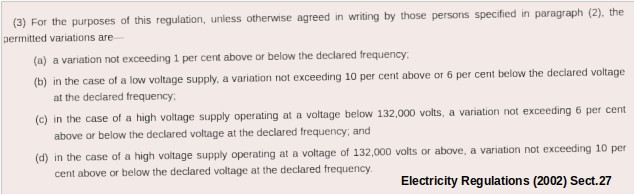 The grid parameters in GB are set by the Electricity Regulations, Section 27