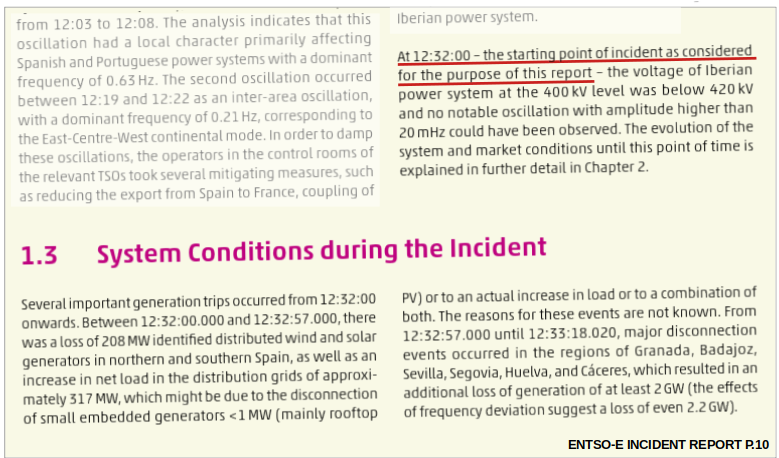 @transparent my reading of the report P28 (and probably limited understanding) is there were 3 oscillation events 11am, 12 and then the catastrophic one @12:30 and after all 3 the demand on the system increased and the demand increase is possibly due the behind the meter PV cutting out. The system recovered after the first two oscillations. The failure cascade truly started from the additional 355MW generation loss due to transformer trip in the substation in the Granada area. (P103 listing) following the 317MW of probably private PV drop-out causing a load increase.