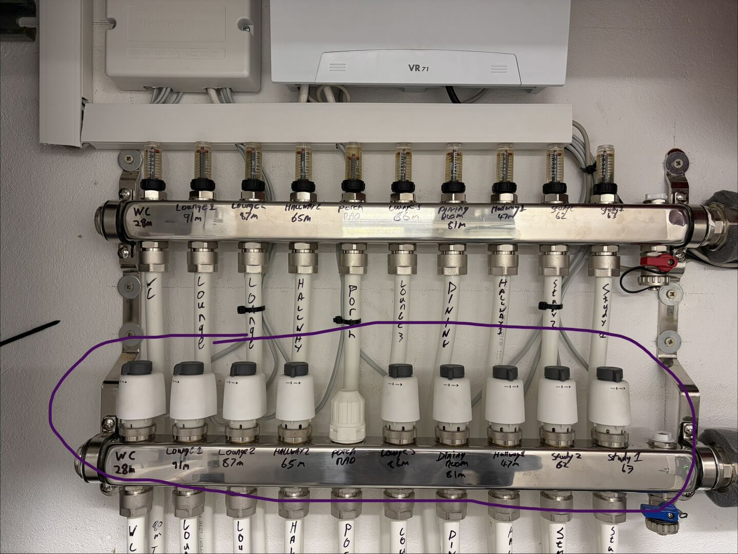 I made sure both were identical settings, I had even tried with turning one off. So the way it works is that if the downstairs hits temp then are shutdown at the manifold so giving the rads all the flow. (That was the thoery I was told)