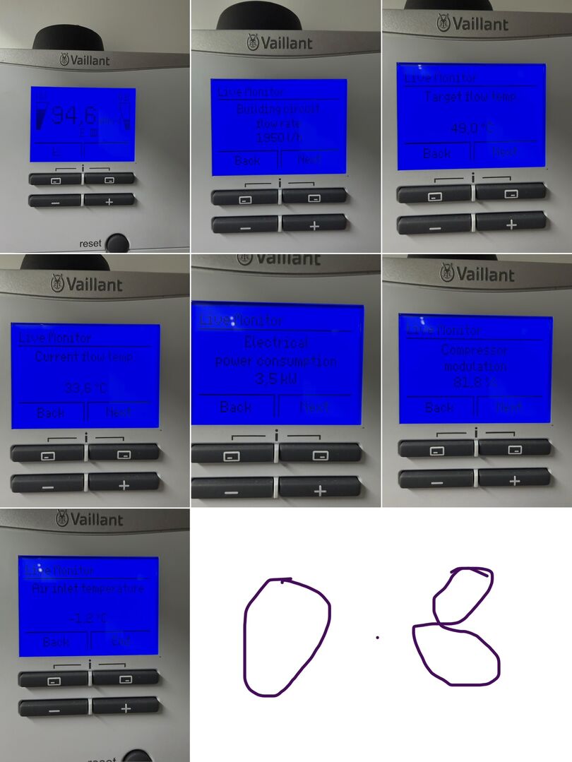 Does that image show a target flow temp of 49°, and a current flow temp of 33°C (the images are rather blurred). If so, and it is not in the deep trough of a defrost, then I think you have narrowed down the problem to something on the delivery side of things, ie tweaking the curve settings isn't going to fix it.