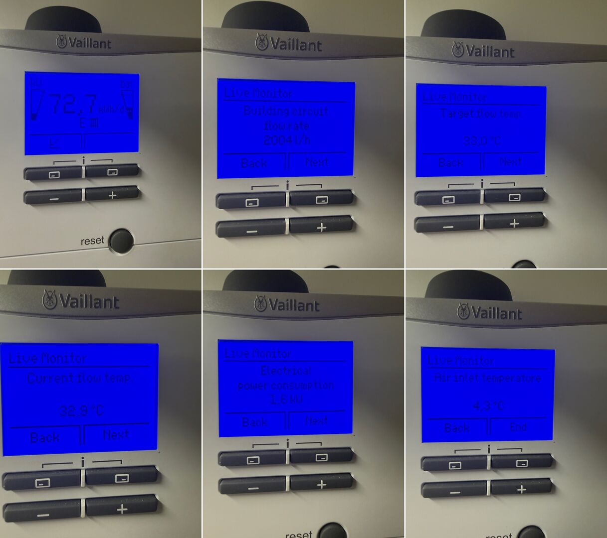 Incidentally programming a weekly schedule has the same effect as changing the target temp, so you can thus program setbacks/set forwards which actually have the effect of changing the flow temperature. This is much better than many manufacturers where the only way to program a setback is to depart from pure WC and use the temperature sensor to control the heat pump through forced on/off cycles.