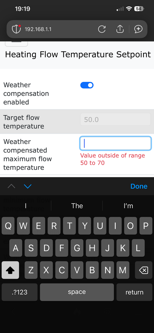 I think what you are saying is that it is likely that as the temp heads up towards 12c, it is likely to cause problems and I'd be better with that set at 36c and adjusting the Cold Weather value? Certainly with the settings at 50c and 33c the house massively overheats and the only limit I have is by setting the thermostat but that causes comfort issues and also seems unnecessarily inefficient to heat the water just to let it drop off as the Cosy turns off. Hopefully I can get them to drop the minimum Cold Weather flow temp min value below 50c.