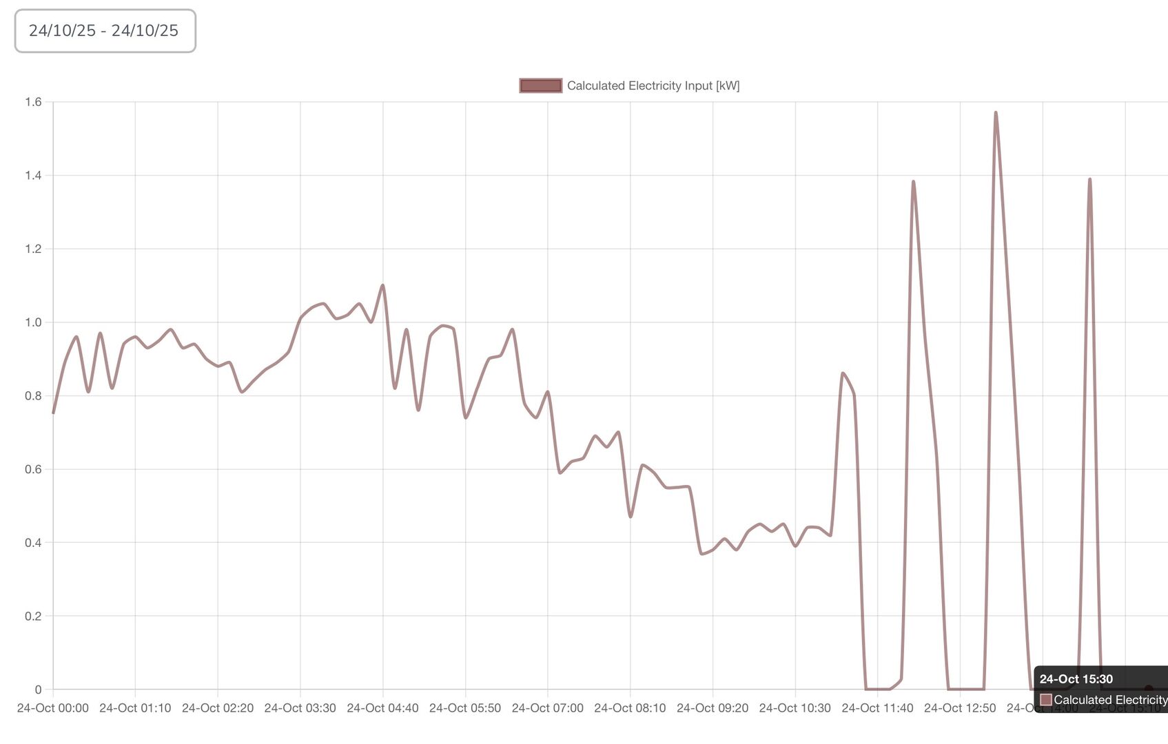 Posted by: @jamespaYes if it results in the heat pump being cycled on and off, which clearly it does. In this circumstance it's the average you need to think about which is 0.8kW consumption. It's on-off control not proportional control