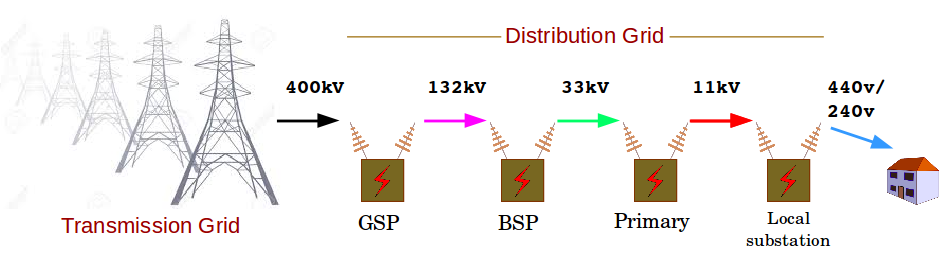 It doesn't go upwards to the 400kV National Transmission Grid.