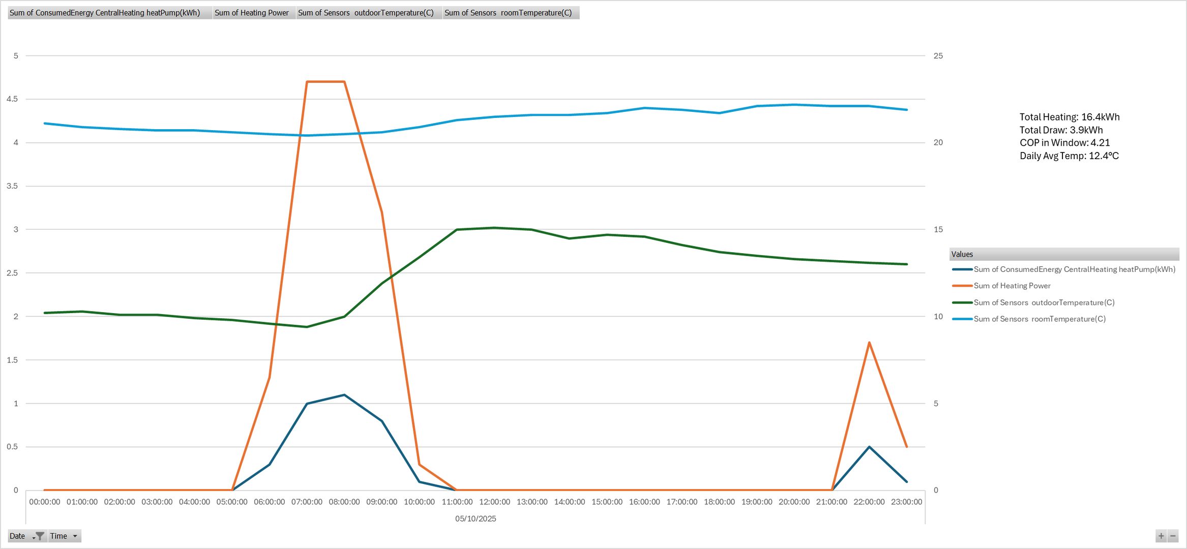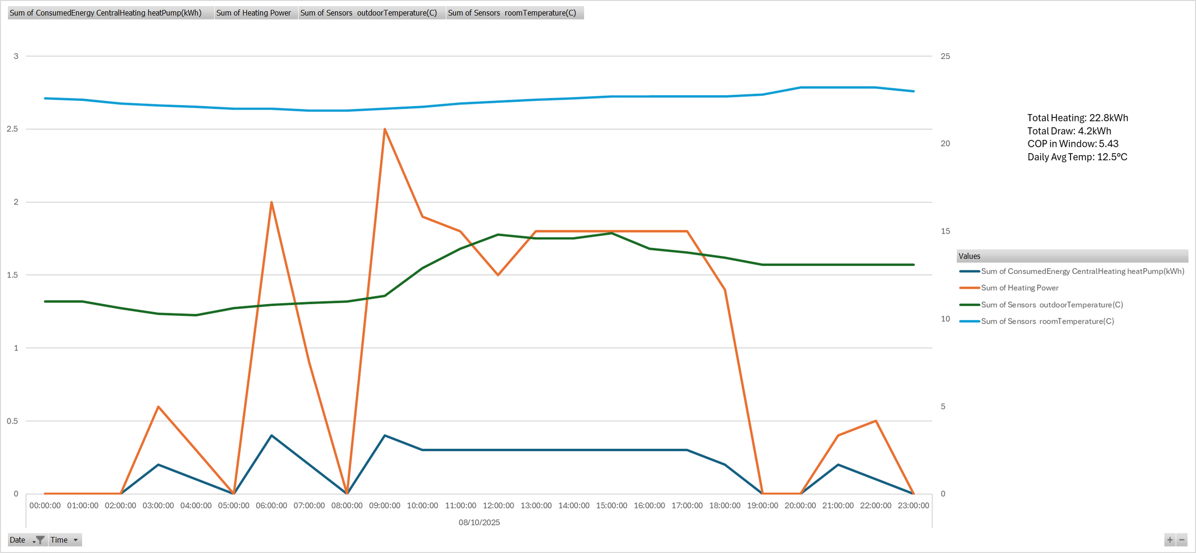 After turning on the pump, yesterday was a very similar day in terms of temperatures: