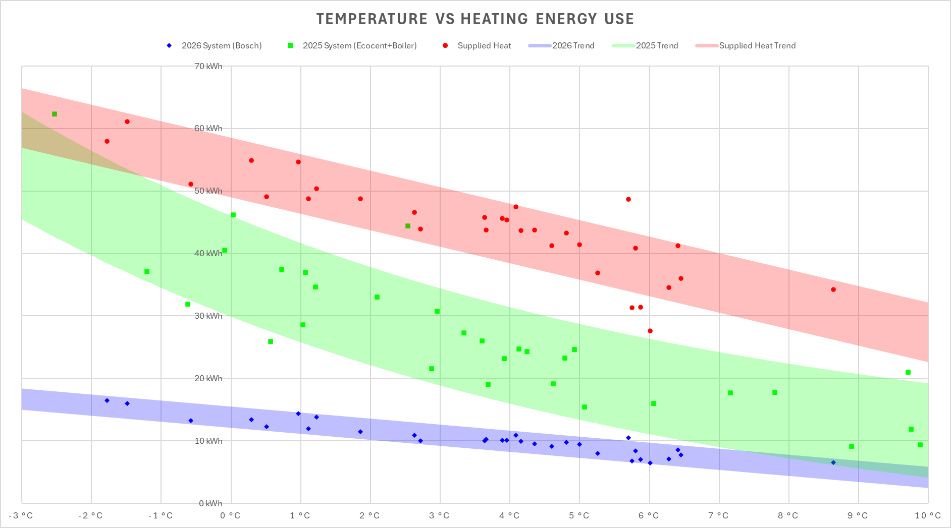 This winter, the flat has stuck solidly between 21.5C and 23C and I have not needed to tweak anything major at all. The bathroom is never cooler than 20C. The showers are always warm. This has resulted in more frequent and longer showers. I have also been able to connect everything to home assistant, and can easily top up hot water, quickly and cheaply, when we have guests, and can turn everything right down with the touch of a button when we go away for holiday, then have it come back on a day before we return to ensure maximum comfort.