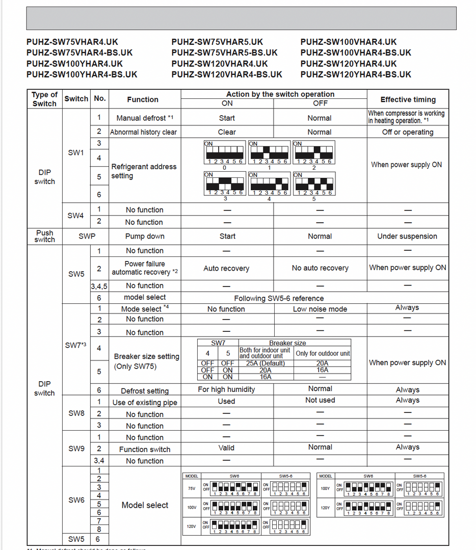 P.S. I have susequently found details of the PUHZ-SW120 dip switch panel,