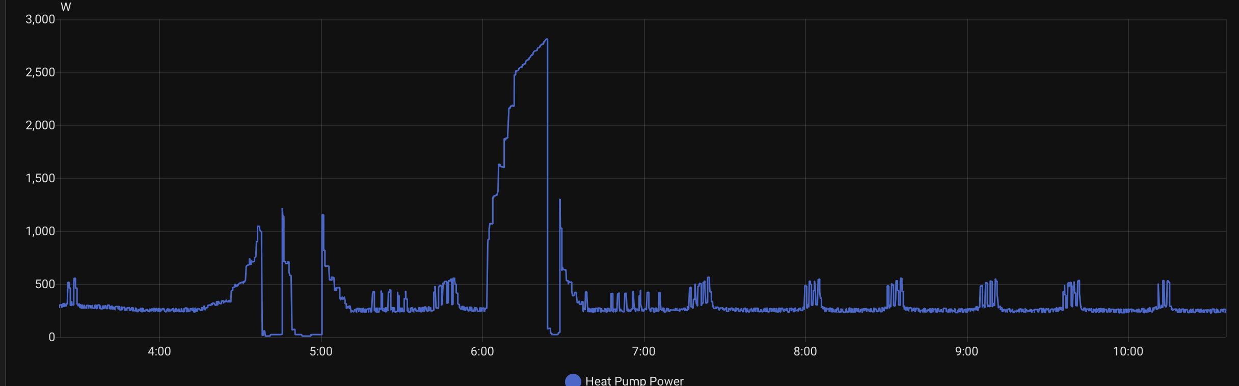 Posted by: @ubert767Here is an expanded view of this morning's plot. I was wondering if the spikes are the result of the inverter doing its thing? I haven't yet checked on the compressor's state during this period.