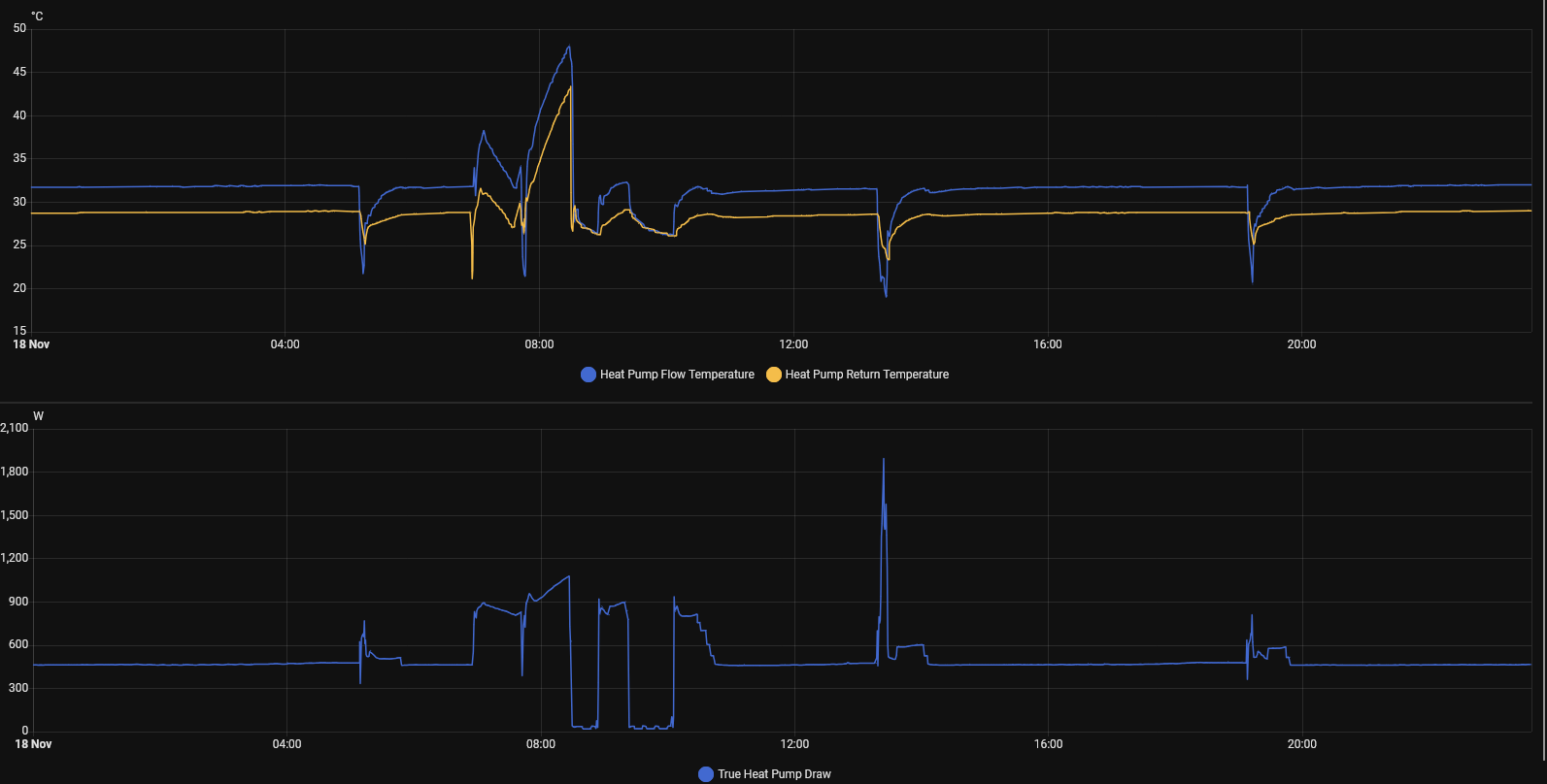 @toodles That certainly doesn't look optimal, does it? It also looks worse than our unit. Our unit does have an initial spike, but seldom to more than 40% power while yours seems to be going all out right away. It then quickly blows past its target flow temperature and switches off again.