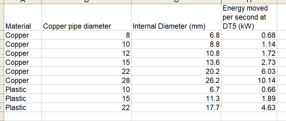 It gives the maximum power that can be put through different pipework. As you can see 15mm plastic is significantly higher than 10mm copper if needed. The other advantage of using plastic is that often bends can be eliminated with sweeping curves. The plastic inserts do narrow the pipe significantly so I use the Hep2O steel inserts instead.
