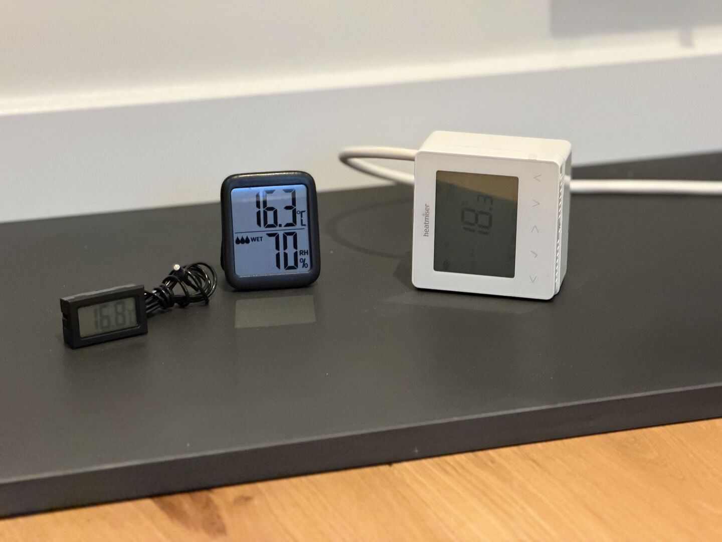 I’ve purchased another type of temperature monitor as I wanted to reconfirm that the Heatmiser panels are showing temps that read too high.