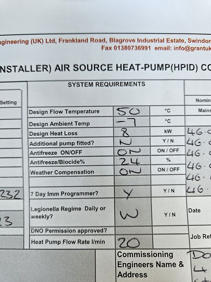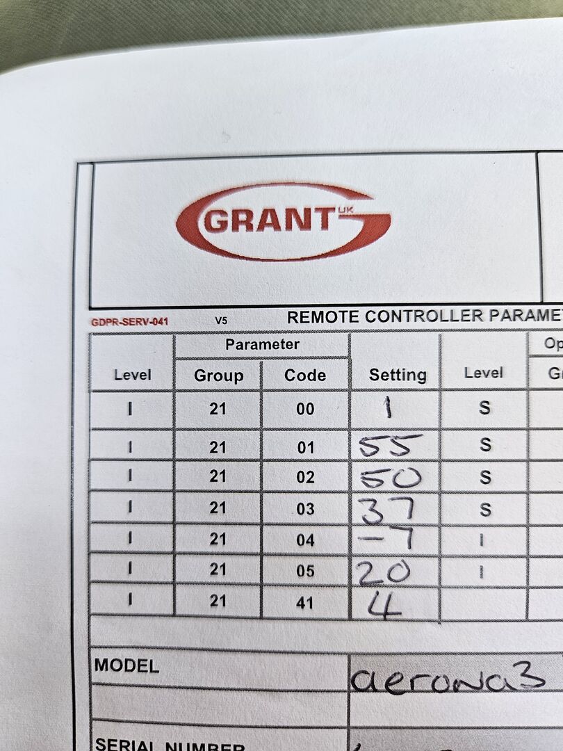 The parameters have been set up correctly, or at least to what the installer has written down in the handover pack, I have checked this on the Grant controller (see picture) So weather compensation is enabled.
