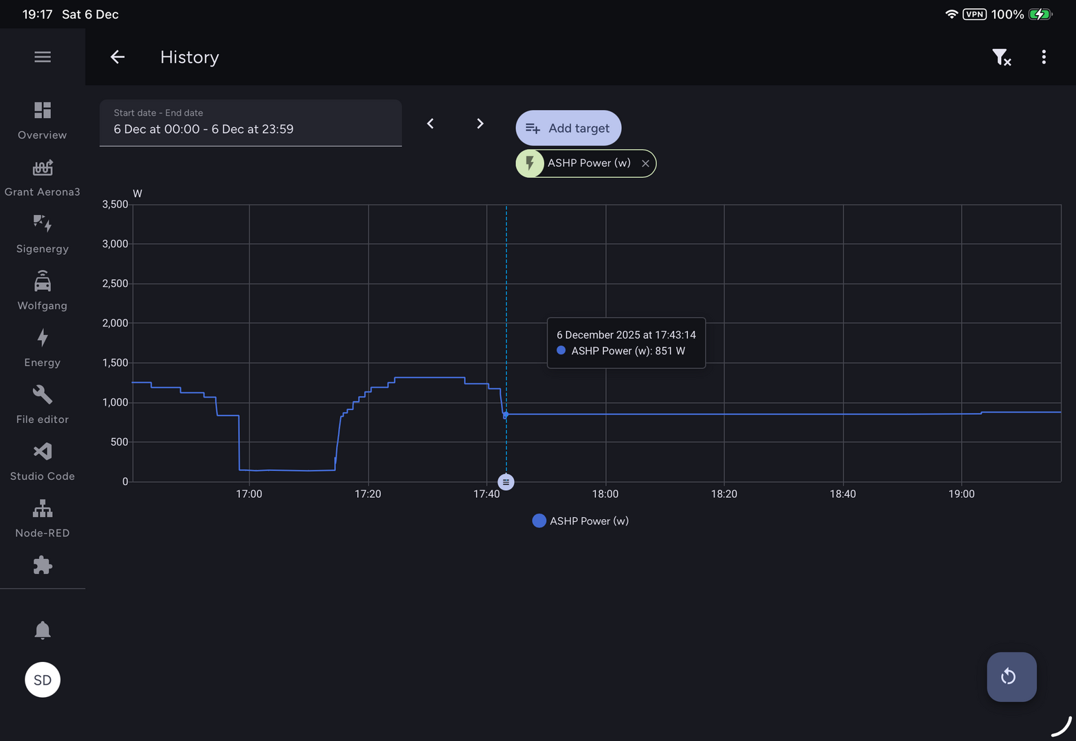 Hold the phone, now I don’t want to jinx this but in the process of balancing my system (or at least trying to) I thought I would go down a different tack and used decorators caps instead of the TRVs (sorry @toodles I failed miserably at following instruction although it is an excellent guide!) I popped out a thermal camera and took a look at all the rads and two were completely off (TRVs were seized closed), no idea why but they are now fully open (obvs checked all the others). All lock shields are now fully open and the three upstairs rads have been closed down via the decorator caps until the rooms were a degree colder than the downstairs. The two massive uprights in the kitchen are set to 2 on their TRVs to offset the Aga now the whole house is at a steady temp every room is within a degree and the best thing yet is I have had a steady run for the past two hours! My COP is through the floor but at 800-ish watts with the compressor at ~30hz I am heating a 4 bedroom 1970s dormer bungalow!