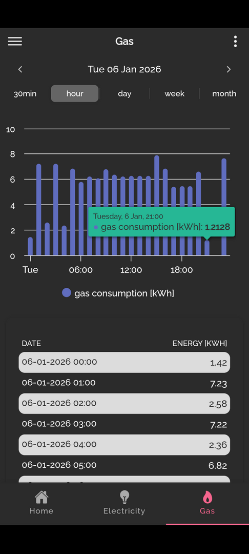 Below is our gas usage for the coldest day Tuesday 6th Jan, which ranged between -8c and +4c