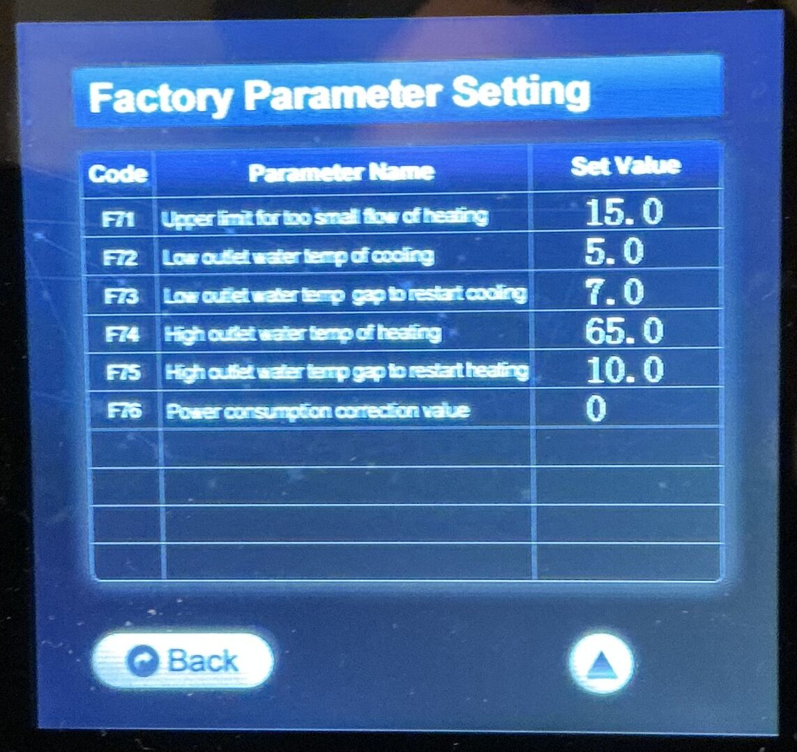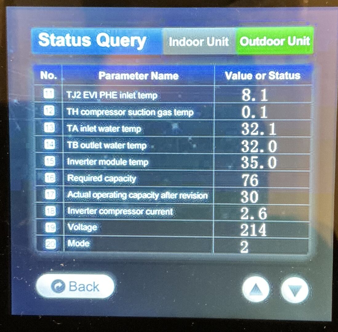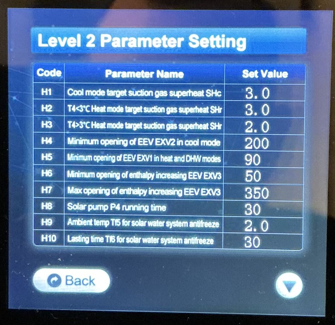 On a more practical note there are some parameters in those menus that look interesting, but its a bit difficult to be precisely sure what they do. An 11kW heat pimp should be big enough for most properties if it really is 11kW; consumption suggests it may not be.