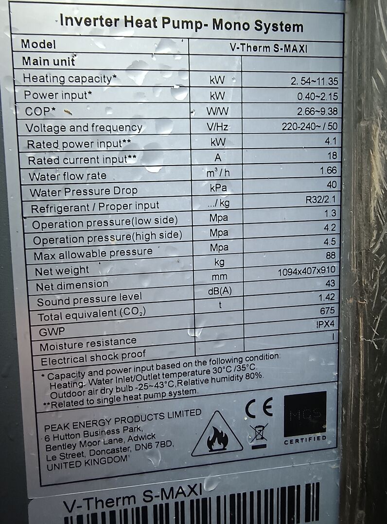 Posted by: @davecFor our model of PEP-M09 (as the middle option I think it’s that one, not actually labelled as that on the side of the external unit) at +2 degrees OAT it only manages to produce 7.52kw and take into account the defrost cycles and it is underspecced for our needs and that’s why it needs the 3kw backup immersion turned on to cope.
