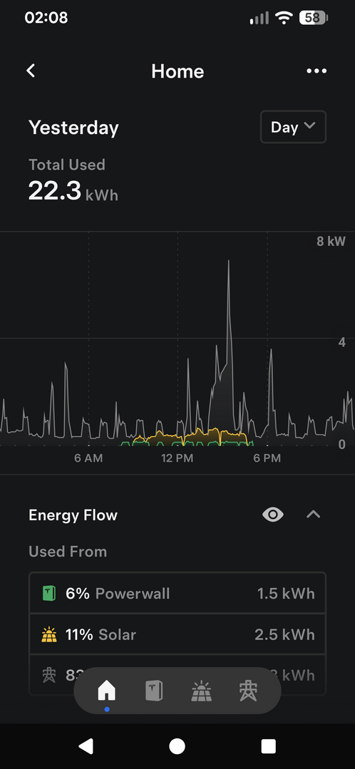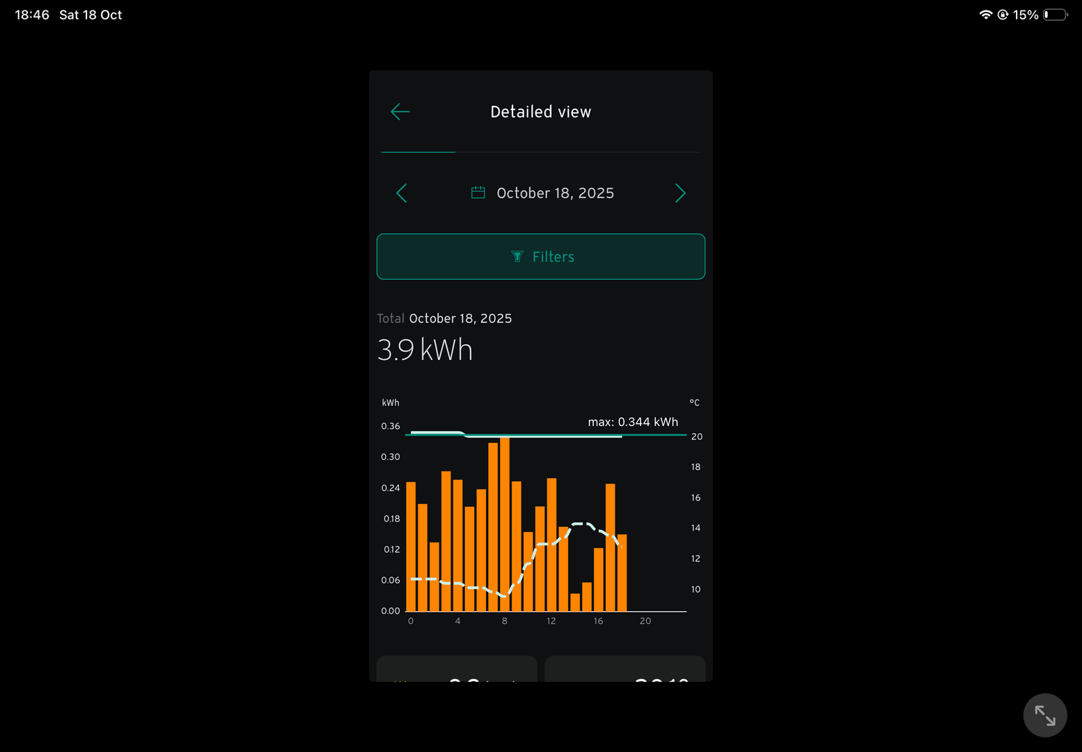 That was a snapshot of just the night and some of this morning. Will post another pic below which will show what it’s done from 00:00 to 18:45. There is a dip at 14:00 for hot water.