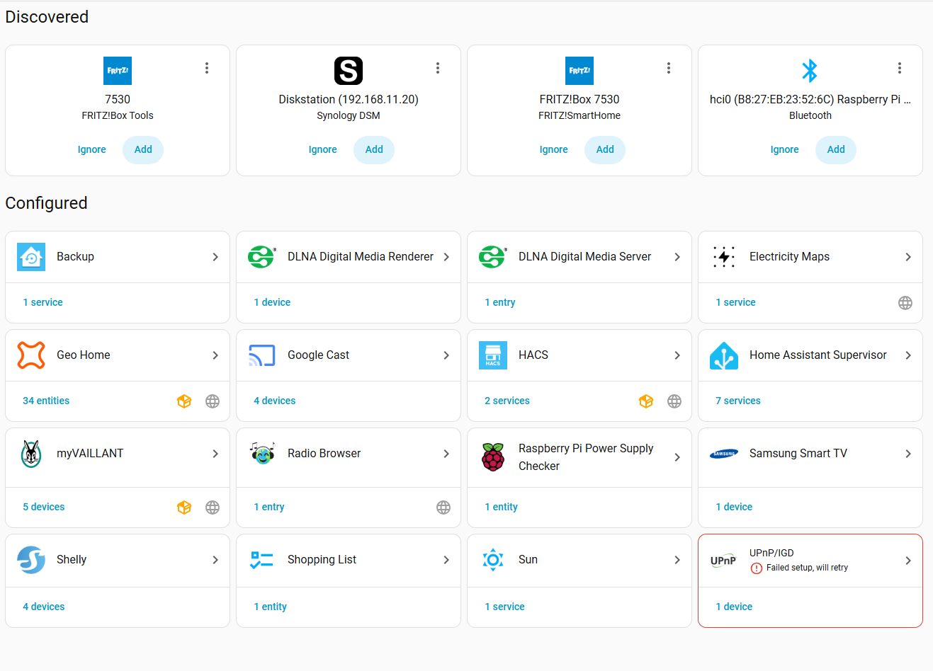 If you go instead to settings - devices and services you should see a screen like this (you will have different devices and services, but should have the Vaillant one