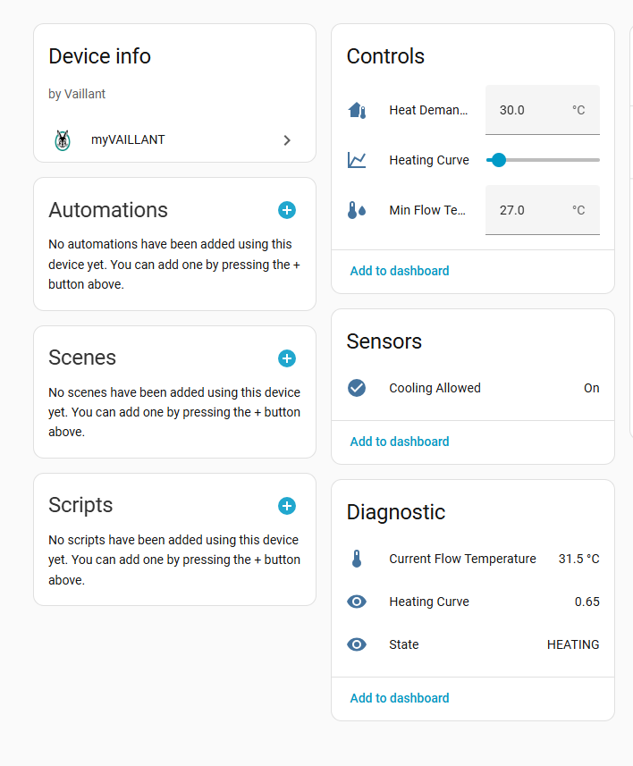 Click on myVaillant, you should see 4-5 lines each describing a 'device', like the screen you posted above. If you click on any of them you will see loads of tiles each of which has a link 'add to dashboard', something like this