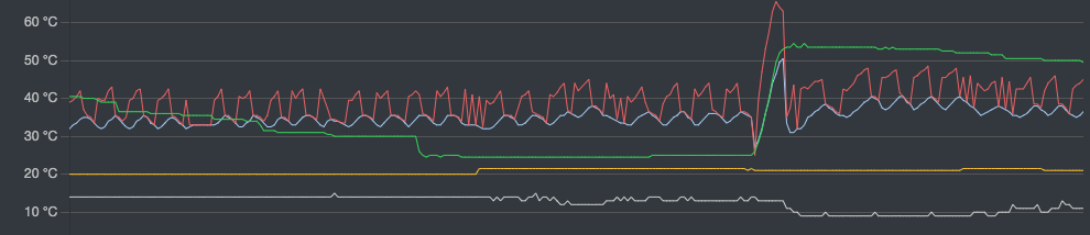 Weather compensation is now 27C @ 18C, but at +8, in an attempt to get an increase in inside temperatures. For the first time in 3 years we are getting signs of mould in the North facing rooms.