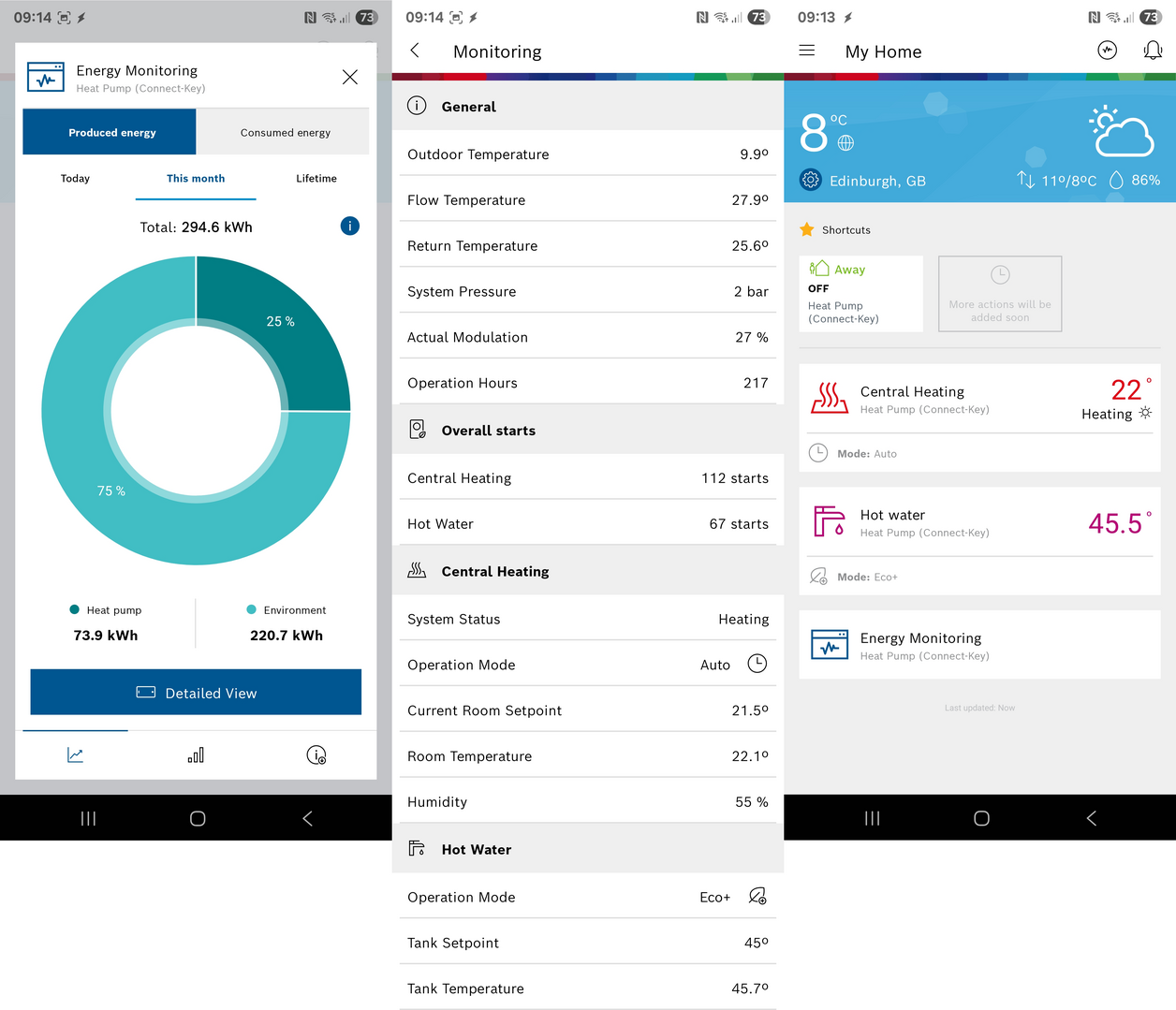 Our Bosch 5800i 5kW has a ConnectKey installed which, in addition to giving Bosch remote access if needed, allows us to access it using 'HomeCom Easy' which gives the following information and controls: