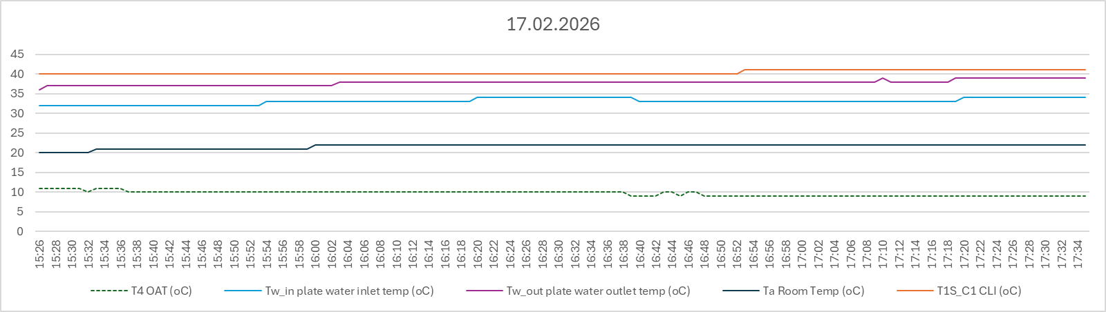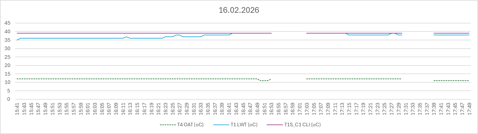 You may see in the 17.02.2026 diagram that T1S rises from 40 to 41 when T4 OAT drops from 10 to 9 degrees. Whereas on 16.02.2026, T1S was 39 degrees while OAT was 12 to 11 degrees.