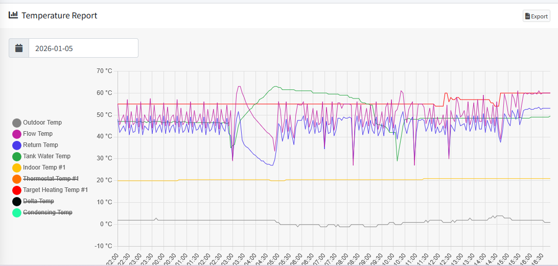 However the average flow temperature stayed well under target, so about about 3pm I switched to a constant flow temperature of 60C, but this still doesnt seem to be raising the average flow temperature.