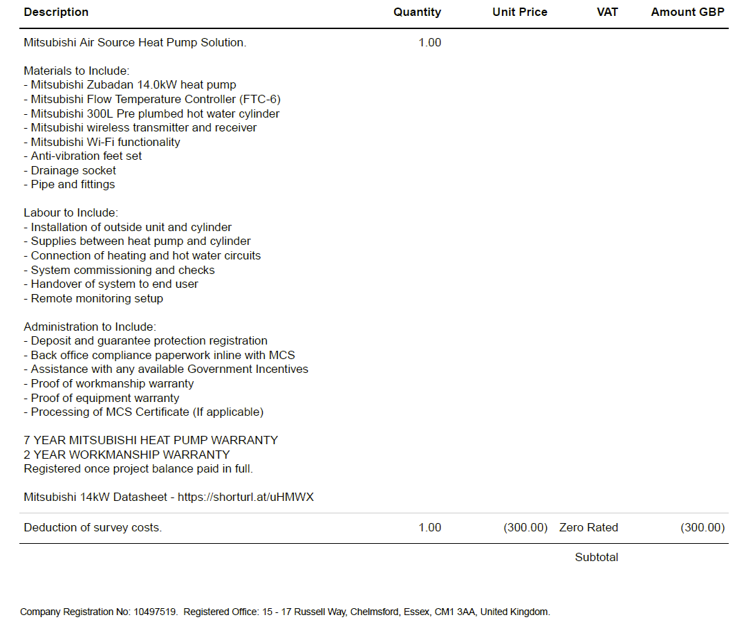 I contacted the installer asking for a breakdown of the sundries, he said sorry about the first room. I was kind of expecting a sorry - send me a picture of the radiator or the dimensions and I will double check the designed flow temp will be sufficient for the rooms heat loss. But no just a sorry. And then for the sundries he said Heat Geek would have this and I should contact them. Which I thought very strange. Anyway I did contact Heat Geek and they said they didn’t have any details and would have to contact the installer. At which point I lost all faith in the Heat Geek system and said I’m out. I didn’t want to have the constant back and forth the whole time.