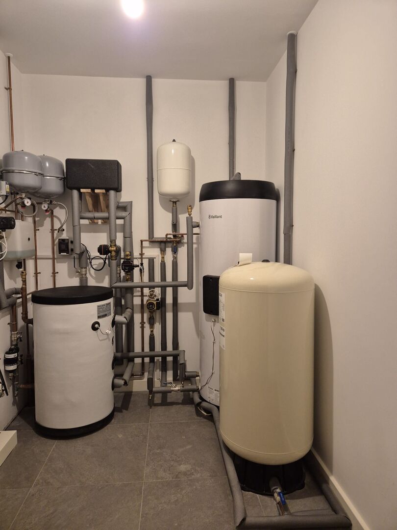 Hi just moved into a Barn which has underfloor heating and 2 Air source heat pumps. We were on the understanding the one ASHP was for the underfloor heating and the other for the domestic hot water. The whole system is operated is Vaillant with 2 panels that show how much each ASHP is drawing each day in KW and then a single digital control panel where you can alter zones and towel radiators etc. The first few weeks seemed ok although I did put up the DHW to 55 degrees as that had been set at 50 degrees and that sorted out the warm showers. But last week we had a problem where after one shower the water was only luke warm. Plumber came out and adjust a few things like turning off the hot water pump as this he said could be pumping water round the whole system (its a 6 bedroom barn over 4000sq ft) but that then meant the hot water tank was getting hotter but we then couldn't get hot water through. So I turned the pump back on which solved getting hot water but then we were back to luke warm water after one shower. So for last few days I've been turning on the immersion heater now and again so this sorts the hot water situation.