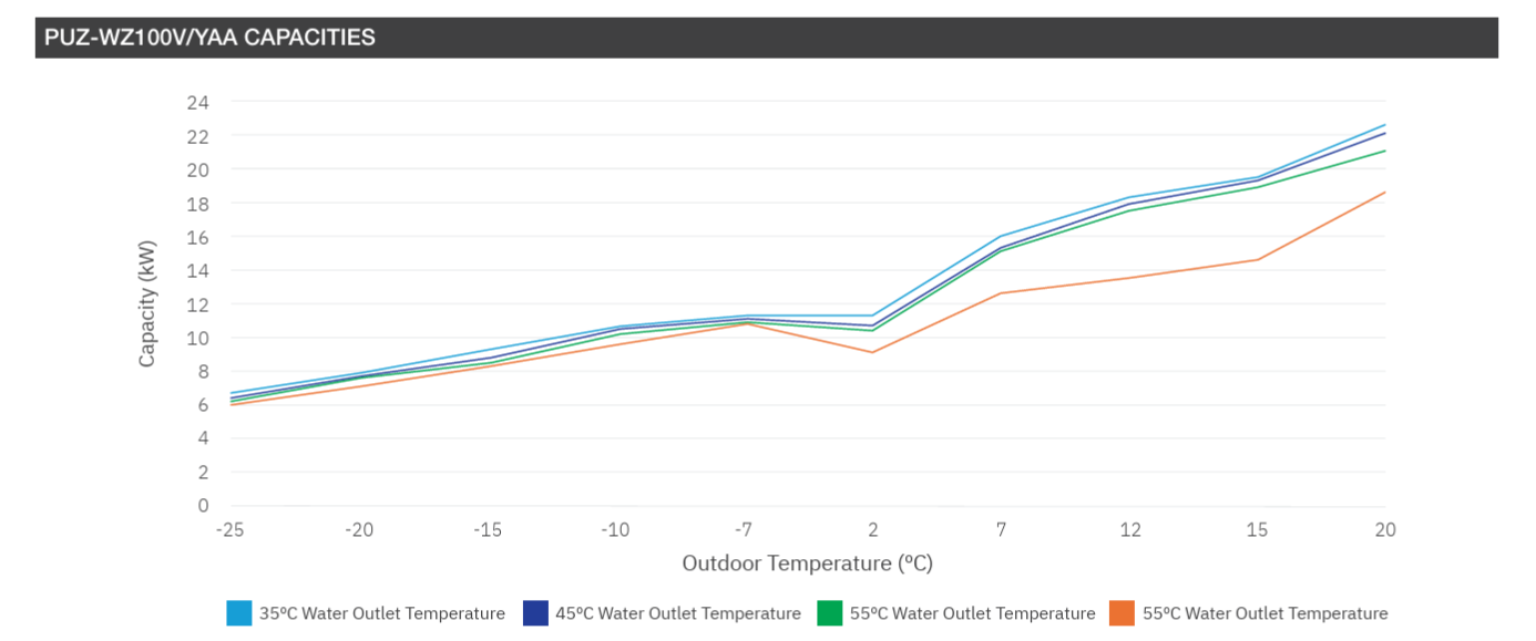 I didn't spot it immediately, to my shame, but when I finally spotted that they'd applied varying scaling to the x-axis it created a determination to find something better than this, which took a bit more time, as simple google searching doesn't bring it up. Eventually, I did a click by click navigation into the Mitsubishi Ecodan website, read each of the end user documents and discovered nothing new, before finally navigating into the 'for installers' section and finding the relevant databook for my model. This finally did provide some useful information, and a really enlightening insight as to what the system can and can't be expected to do.