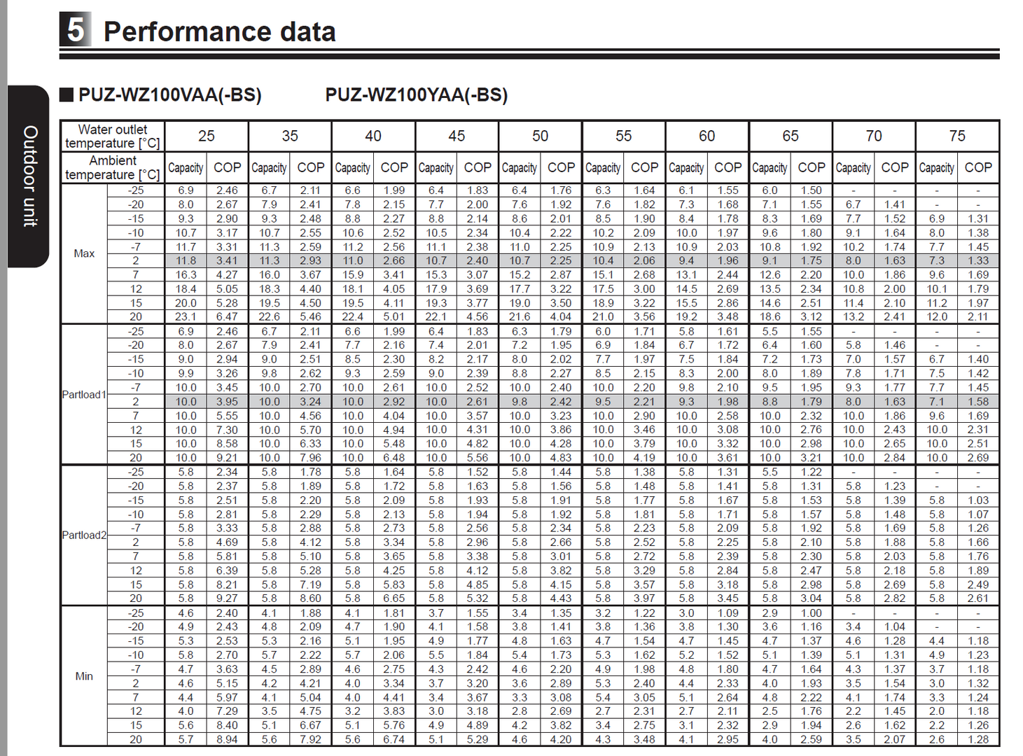 However, the bit that really fascinated me was the CoP information that is provided alongside it, which essentially shows what CoP's are achievable by the heat pump in lab tested conditions under various testing scenarios, which then required searching out EN14511 information to figure out what Partload1 and Partload2 actually referred to.