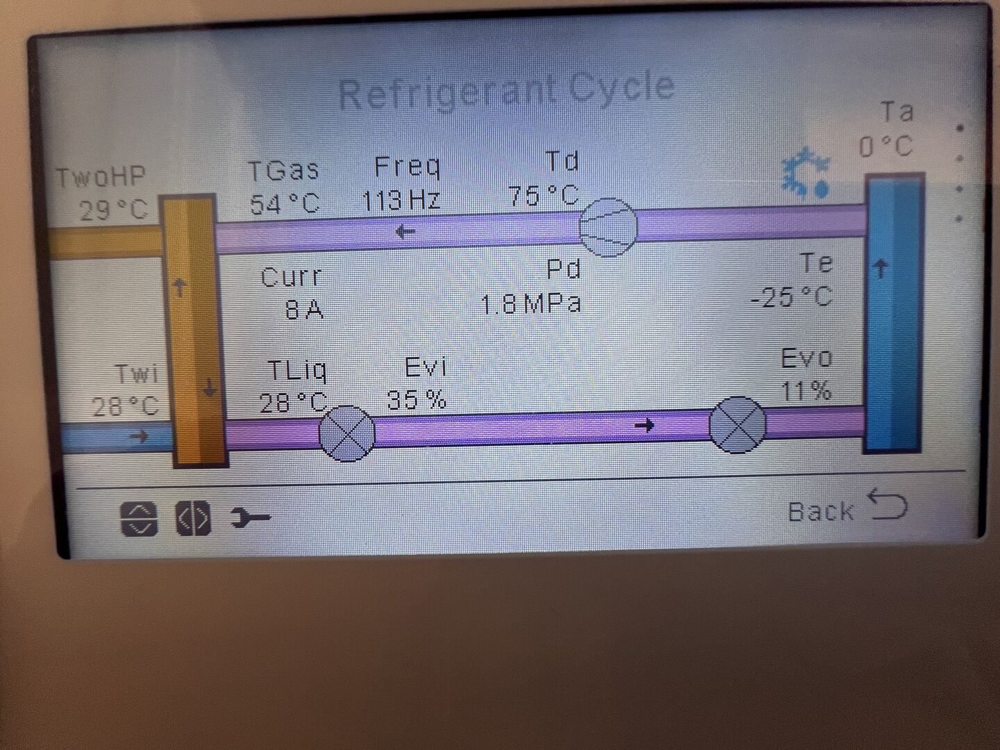 All I can add on the defrost is that the refrigerant temperature does drop as it goes through the defrost cycle. The image was taken the moment the HP started the defrost cycle.
