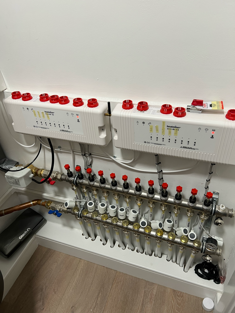 Southern england 179 m2 High level of insulation Underfloor heating All 12 circuits are fully open all the time 1 thermostat in family room 7KW heat pump 50 litre buffer tank (4 port)