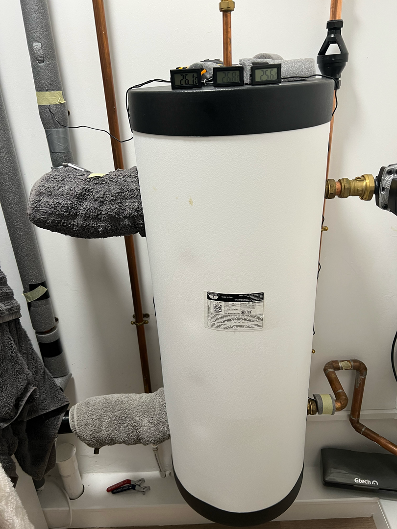 The attached image shows the buffer tank with my probes attached (some in towels and insulation). Temperature displays on top of buffer.