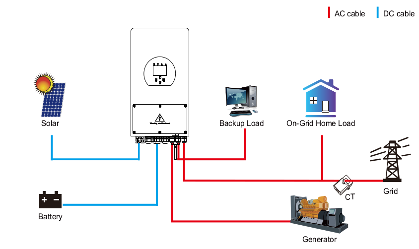 The best strategy for adding a (diesel) generator is to connect it to a dedicated input on a hybrid storage inverter.