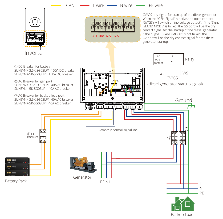 Here's the notes from the Sunsynk inverter, describing how the relay contacts can be wired to