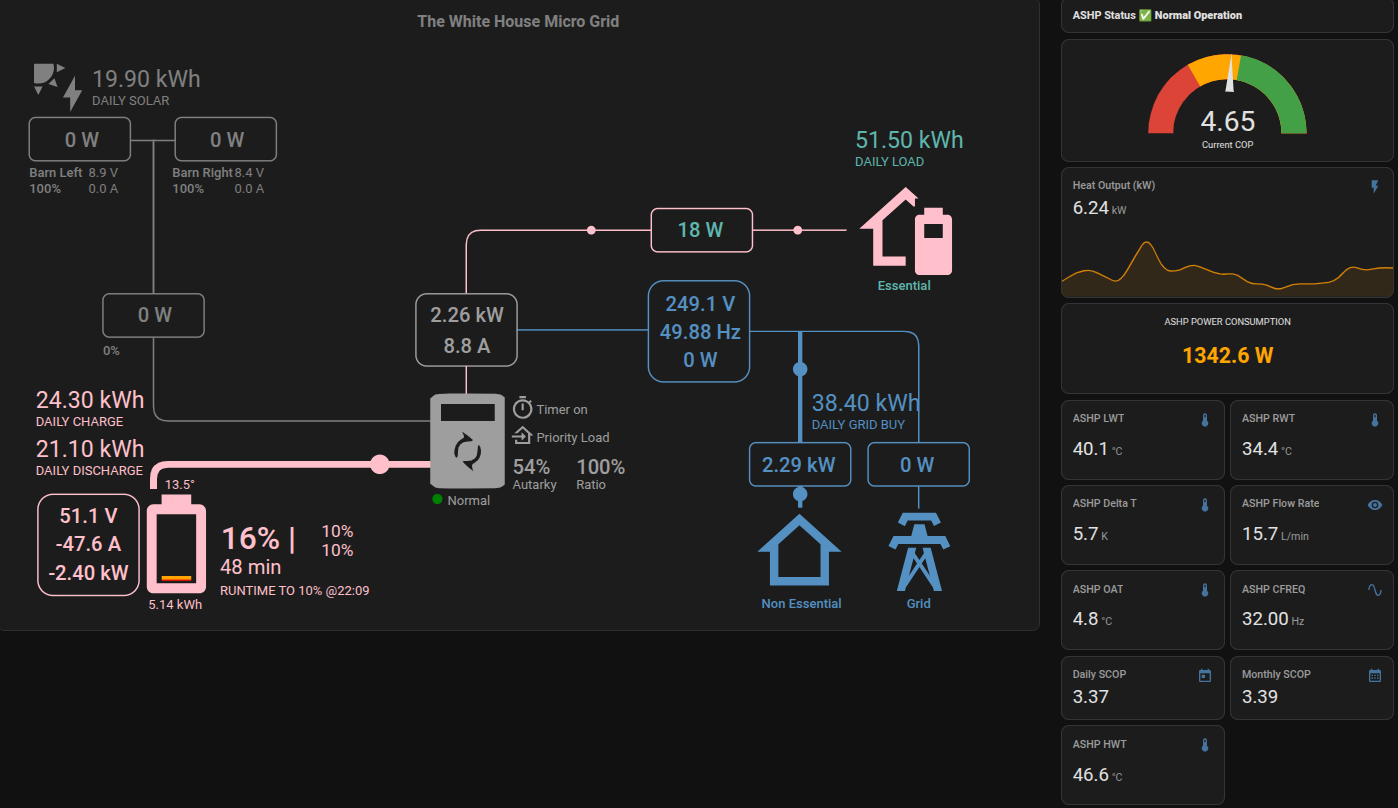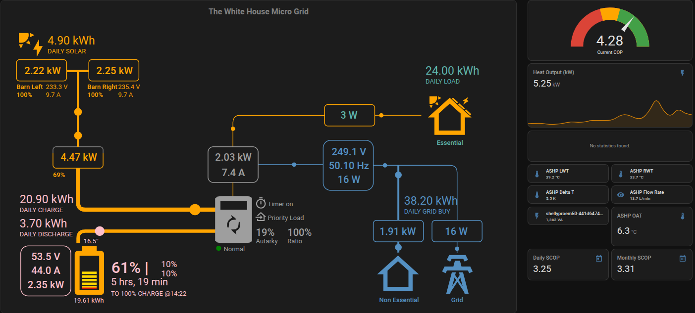 Very early days <2 days running data. But looks promising. My plans include calculating actual running costs in £'s for the ASHP and full and discrete property electrical usage (office etc.) as I have all of the site electrical data and TOU Tariff information.