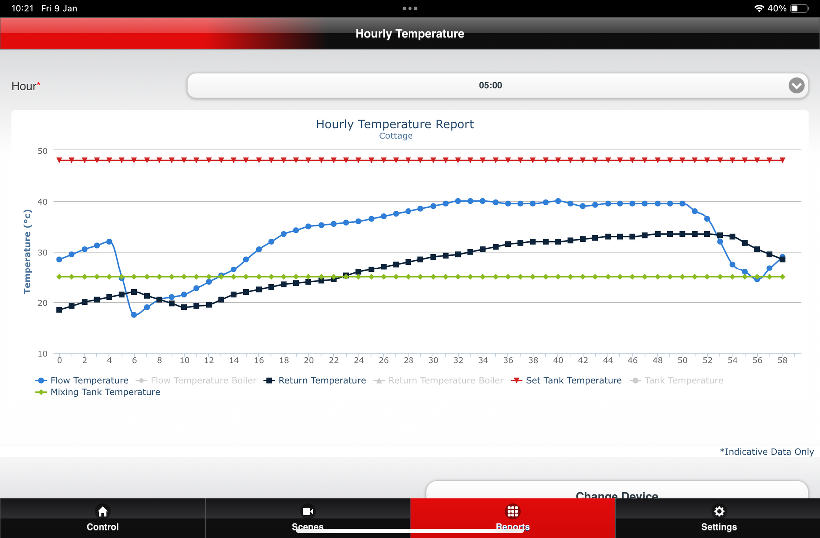 I don’t think you can compare the two systems. Ours is entirely radiator system while yours appears to be under floor heating possibly with volumiser of some kind. A volumiser, depending on where it’s placed will mask a lot of performance as it blends and mixes before the temp sensors.