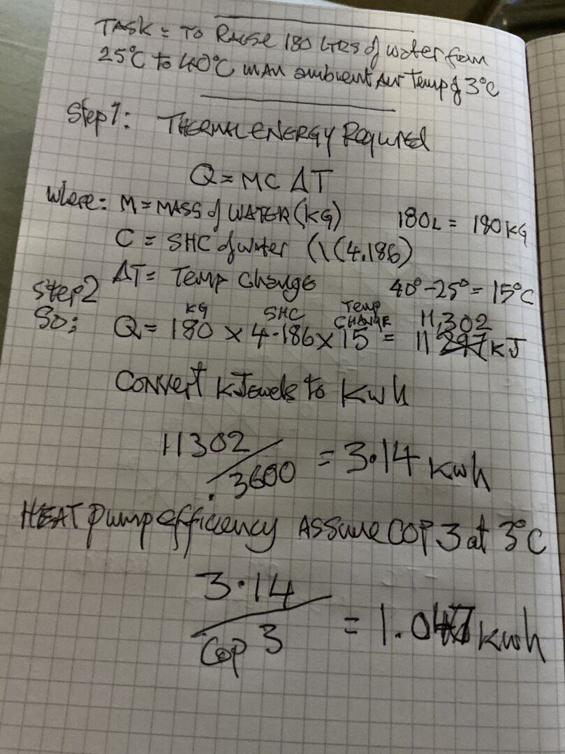 As you can see I’ve based it on a CoP of 3 but it still comes in at just over 1KWh.