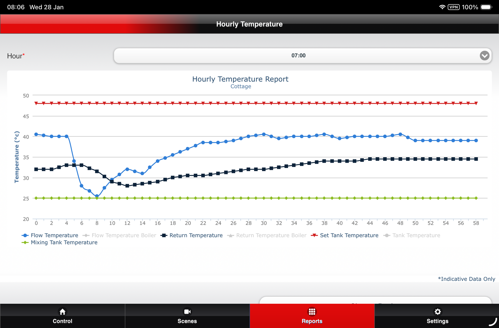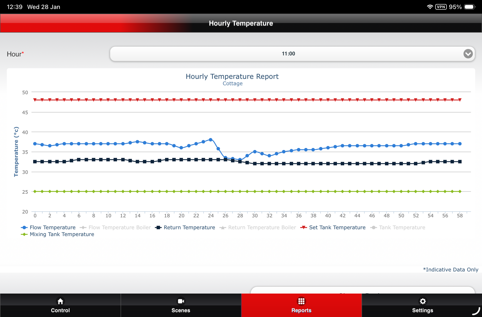 The defrost -when it happened at 7am provided a 15c drop in flow temp in 4 minutes and started a gentle reheat for the next 4 minutes. This was followed by a 2 minute pause in heating before the proper ramp up to its target flow temp of 40C. It’s easy to see the modulated steps in energy being applied.