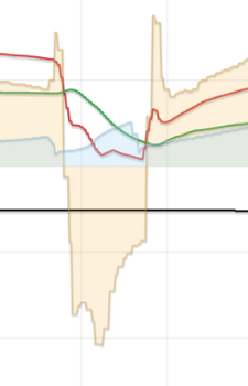 @jamespa — thanks. But the coal is added during the defrost, the shark's fin in energy in happens while there is still 'negative' energy out, ie heat is being dumped from the house to the heat pump (as LWT/RWT delta t is reversed, ie negative). I suppose another possibility is that it is just a lag effect. If we zoom in on the Vaillant defrost (vertical lines are 5 mins apart):