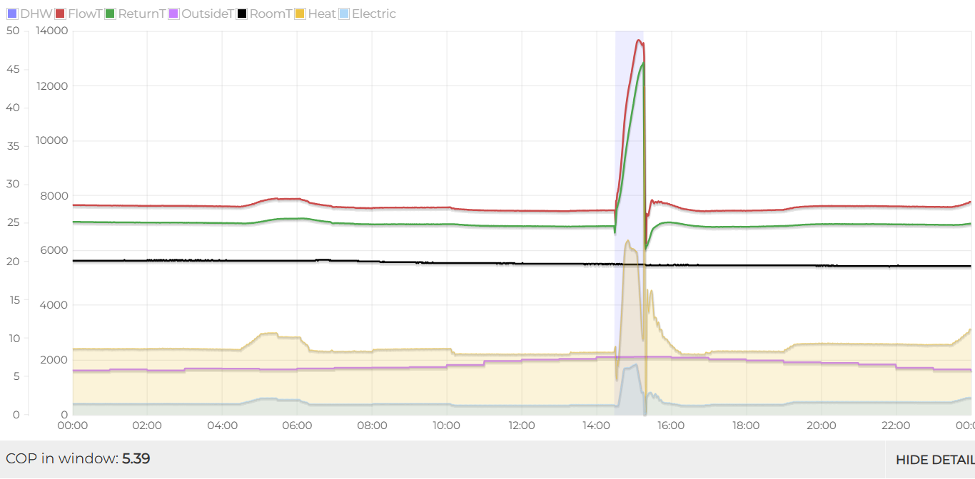 And from there you can zoom and pan, plus press the SHOW DETAIL button to get more info and switch on more info like COP and flow rate.