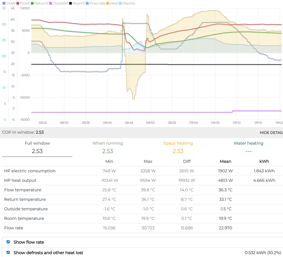 My view is that if it is the target flow temperature of the WC CURVE that operates after the defrost it could easily hide the extra energy needed to replace lost operating time simply because the weather curve is set to reach the target during defrosts.