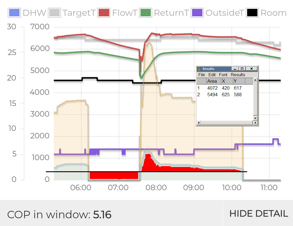 Any comments on the AUC chart I posted, given that it appears to show that on/off running saves energy without lowering the IAT, which is effectively stable, and ends the period as it started it. Roughly quantified*, you appear to have saved 0.47 kWh between say 06:00 and 10:00. Such a suggestion is of course heresy in the heat pump world, but what if it was true?
